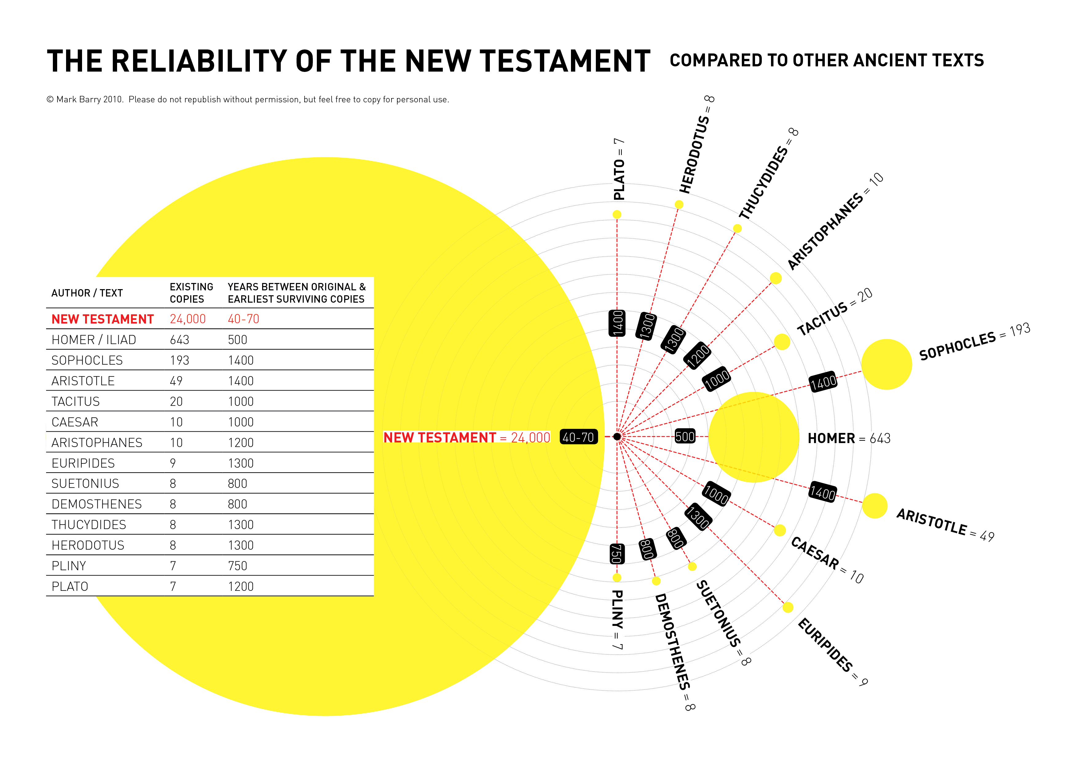 Attached is an image that compares the amount of manuscript evidence discovered of famous historical authors, and the New Testament. One has to be very creative to discredit the manuscript evidence, & its significance. No matter how much some try to silence the Bible, it will always be the Big Elephant in the room when historical writings are discussed, presented, & studied, while the Bible ignored.